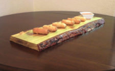 Popular with caterers and restaurant, this serving board lends a restaurant style servings of cheese, fruit, sushi, and much more along with your wine glass. Crafted entirely of beetle kill pine, harvested from the Rocky Mountains, and locally chucked and created in our Loveland workshop.