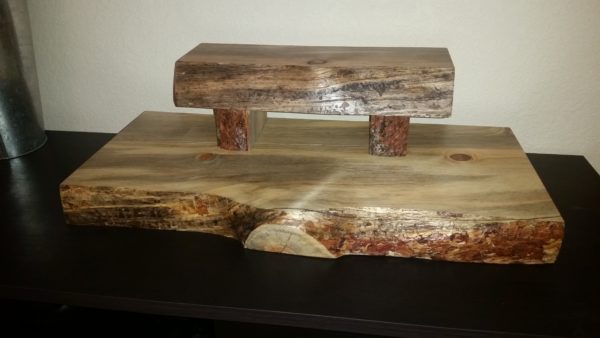 Popular with caterers and restaurant, this serving board lends a restaurant style servings of cheese, fruit, sushi, and much more along with your wine glass. Crafted entirely of beetle kill pine, harvested from the Rocky Mountains, and locally chucked and created in our Loveland workshop.
